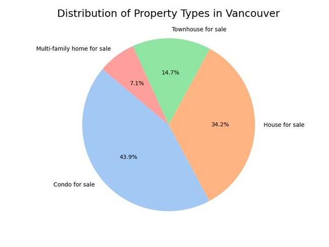 This section provides an overview of the distribution of the housing market in Vancouver, focusing on properties that are listed for sale. The results come from a representative sample of more than 800 properties out of 4000 listed in Zillow by November 18 of 2024. The data collection used a hybrid approach where only one part was automated, this to align with the terms of use from their website. It is worth noting that the purpose of this report is educational and non-commercial.