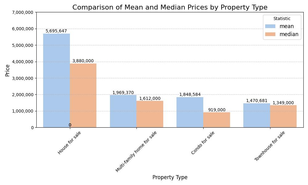 As previously noted, the mean serves as a useful reference point for identifying the average cost of a property within a specific segment. However, in a skewed distribution, this metric can be heavily influenced by extreme values, potentially misrepresenting typical pricing. In contrast, the median provides a more reliable measure, offering a clearer perspective on the central pricing trends without being distorted by outliers.